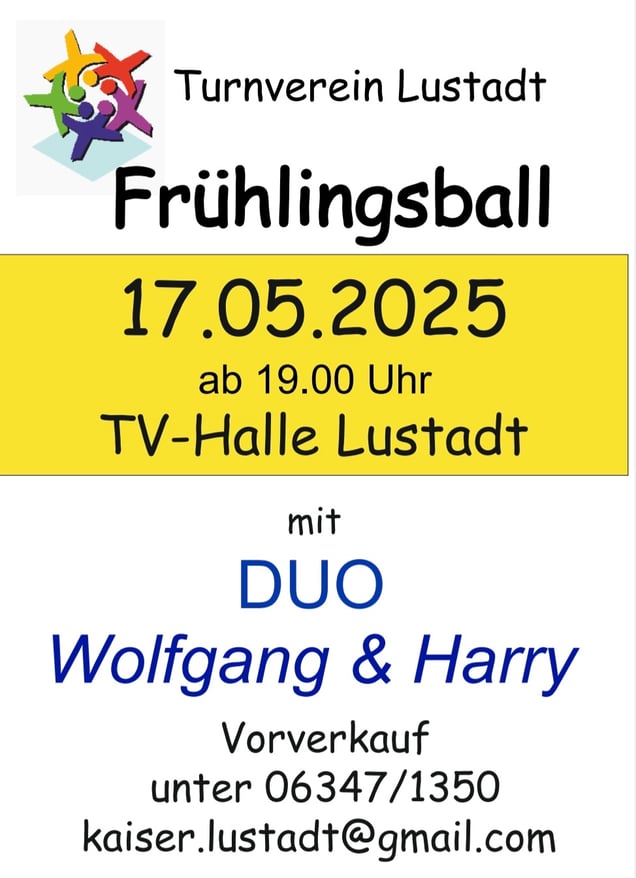 Am 17.5.2025 ist es wieder soweit: Frühlingsball in der Turnhalle! Ab 19 Uhr sorgen Wolfgang & Harry dafür, dass kein